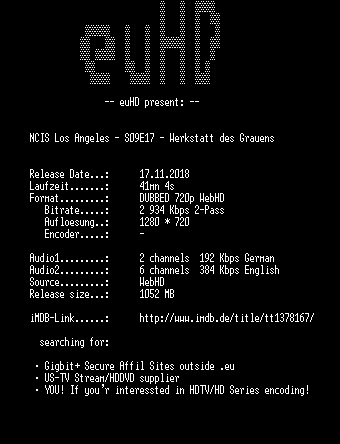 | FiLENAME: | NCIS.Los.Angeles.S09E17.Werkstatt.des.Grauens.GERMAN.DUBBED.DL.720p.WebHD.h264-euHD.mkv |