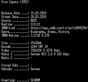 | FiLENAME: | Viva.Zapata.German.1952.AC3.BDRiP.x264.iNTERNAL-SPiCY.mkv |