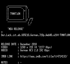 | FiLENAME: | Der.Lack.ist.ab.S05E10.German.720p.WebHD.x264-TVNATiON.mkv |