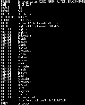 | FiLENAME: | Extracurricular.S01E06.GERMAN.DL.720P.WEB.X264-WAYNE.mkv |