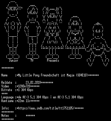 | FiLENAME: | My.Little.Pony.Freundschaft.ist.Magie.S04E10.German.DL.720p.WEBHD.x264-JuniorTV.mkv |