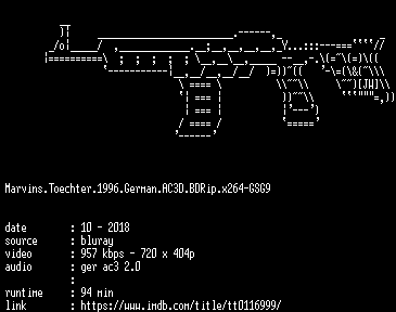 | FiLENAME: | Marvins.Toechter.1996.German.AC3D.BDRip.x264-GSG9.mkv |