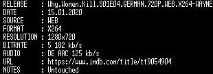 | FiLENAME: | Why.Women.Kill.S01E04.GERMAN.720P.WEB.X264-WAYNE.mkv |
