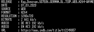 | FiLENAME: | Ray.Donovan.S07E06.GERMAN.DL.720P.WEB.H264-WAYNE.mkv |