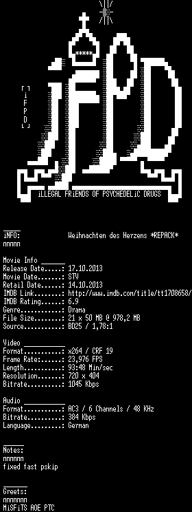 | FiLENAME: | Weihnachten.des.Herzens.German.2010.AC3.BDRiP.x264.REPACK-iFPD.mkv |