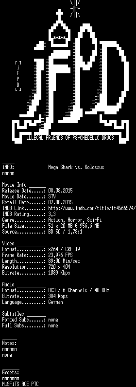 | FiLENAME: | Mega.Shark.vs.Kolossus.German.2015.AC3.BDRiP.x264-iFPD.mkv |