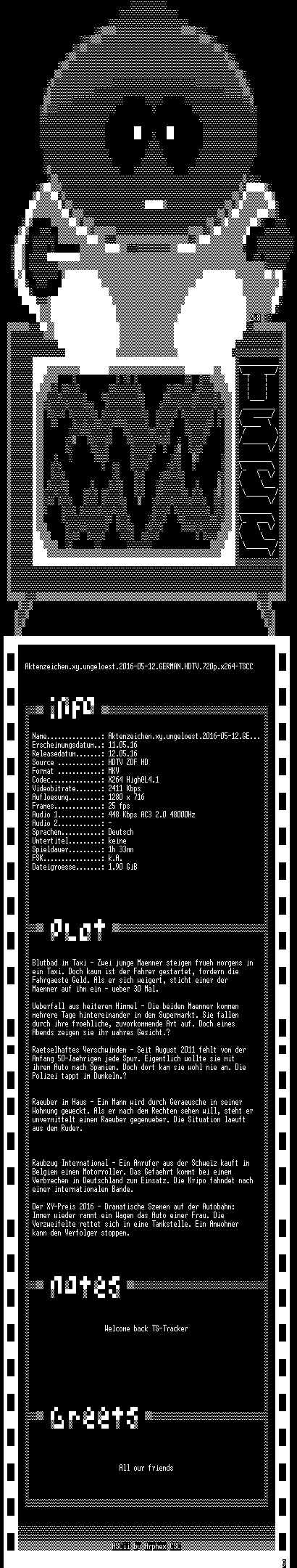| FiLENAME: | Aktenzeichen.xy.ungeloest.2016-05-12.GERMAN.HDTV.720p.x264-TSCC.mkv |