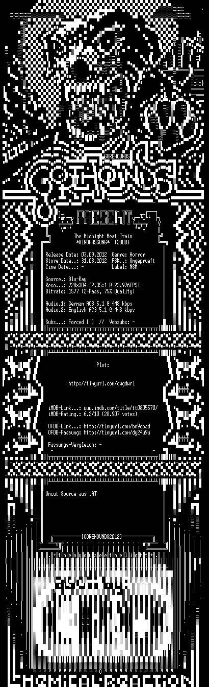 | FiLENAME: | The.Midnight.Meat.Train.KiNOFASSUNG.GERMAN.2008.AC3.DL.BDRiP.XViD-GOREHOUNDS.avi |