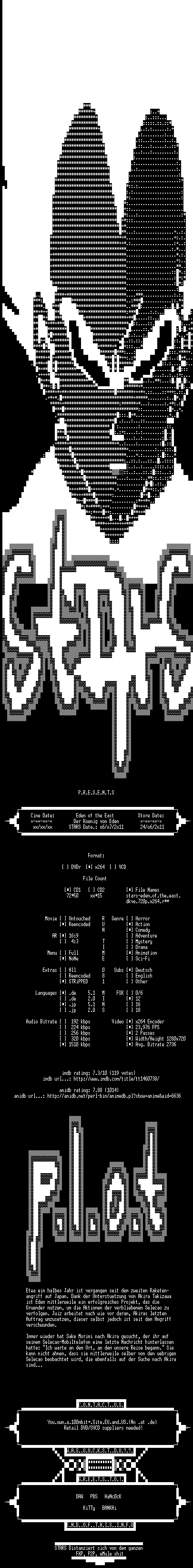 | FiLENAME: | Eden.of.The.East.Der.Koenig.von.Eden.2009.German.DL.DTS.720p.BluRay.x264-STARS.mkv |
