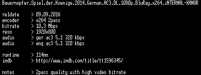 | FiLENAME: | Bauernopfer.Spiel.der.Koenige.2014.German.AC3.DL.1080p.BluRay.x264.iNTERNAL-XANOR.mkv |