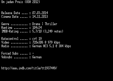 | FiLENAME: | Um.jeden.Preis.German.2012.BDRiP.x264-EXQUiSiTE.mkv |
