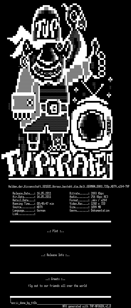 | FiLENAME: | Helden.der.Wissenschaft.S01E02.Woraus.besteht.die.Welt.GERMAN.DOKU.720p.HDTV.x264-TVP.mkv |
