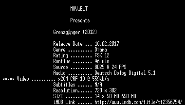 | FiLENAME: | Grenzgaenger.2012.German.BDRiP.x264-MOViEiT.mkv |