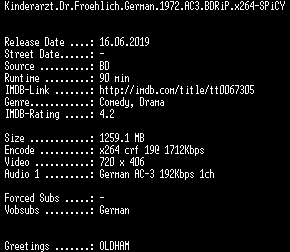 | FiLENAME: | Kinderarzt.Dr.Froehlich.German.1972.AC3.BDRiP.x264-SPiCY.mkv |