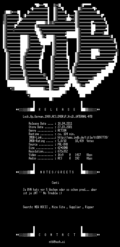 | FiLENAME: | Lock.Up.German.1989.AC3.DVDRiP.XviD.iNTERNAL-NTB.avi |