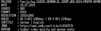 | FiLENAME: | Family.Guy.S16E01.GERMAN.DL.1080P.WEB.H264.PROPER-WAYNE.mkv |