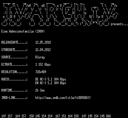 | FiLENAME: | Eine.Wahnsinnsfamilie.1989.German.DL.BDRip.x264.iNTERNAL-TVARCHiV.mkv |