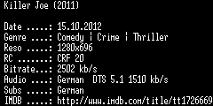 | FiLENAME: | Killer.Joe.2011.German.720p.BluRay.x264-DESPiTE.mkv |