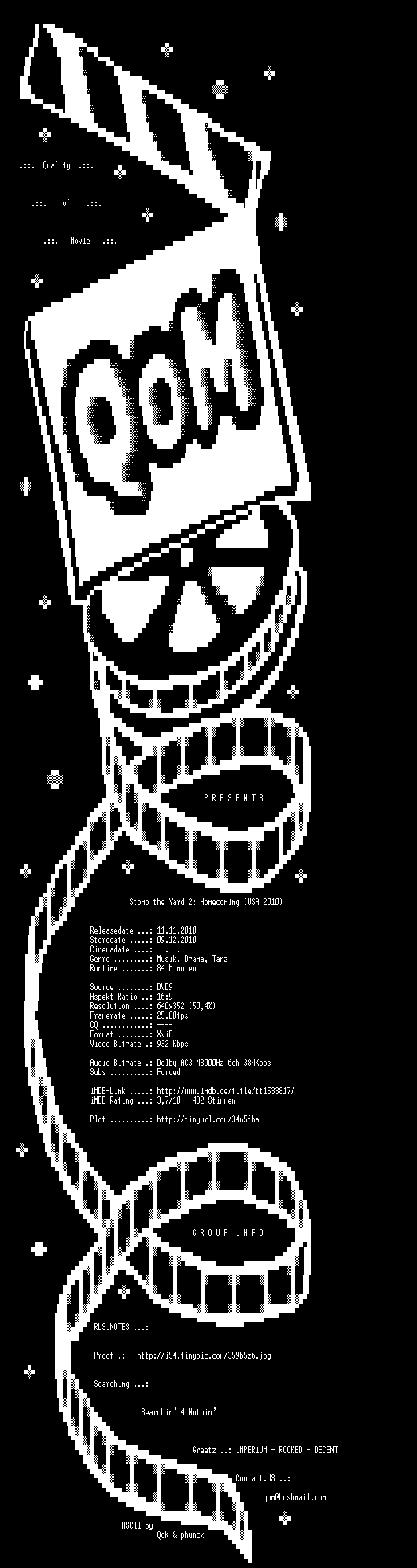 | FiLENAME: | Stomp.the.Yard.2.German.2010.AC3.DVDRip.XviD-QoM.avi |