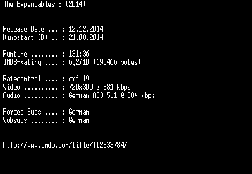 | FiLENAME: | The.Expendables.3.EXTENDED.German.2014.BDRiP.x264-EXQUiSiTE.mkv |