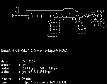 | FiLENAME: | Rim.of.the.World.2019.German.WebRip.x264-GSG9.mkv |