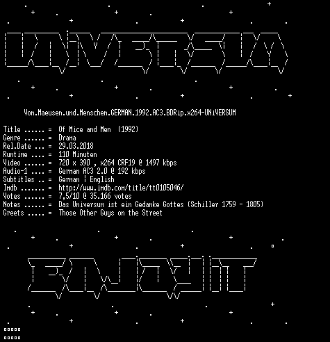 | FiLENAME: | Von.Maeusen.und.Menschen.GERMAN.1992.AC3.BDRip.x264-UNiVERSUM.mkv |