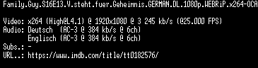 | FiLENAME: | Family.Guy.S16E13.V.steht.fuer.Geheimnis.GERMAN.DL.1080p.WEBRiP.x264-OCA.mkv |