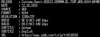 | FiLENAME: | Costume.Quest.S01E12.GERMAN.DL.720P.WEB.H264-WAYNE.mkv |