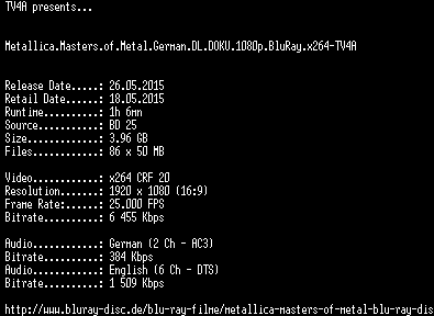 | FiLENAME: | Metallica.Masters.of.Metal.German.DL.DOKU.1080p.BluRay.x264-TV4A.mkv |