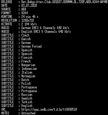 | FiLENAME: | Der.Babysitter.Club.S01E07.GERMAN.DL.720P.WEB.X264-WAYNE.mkv |
