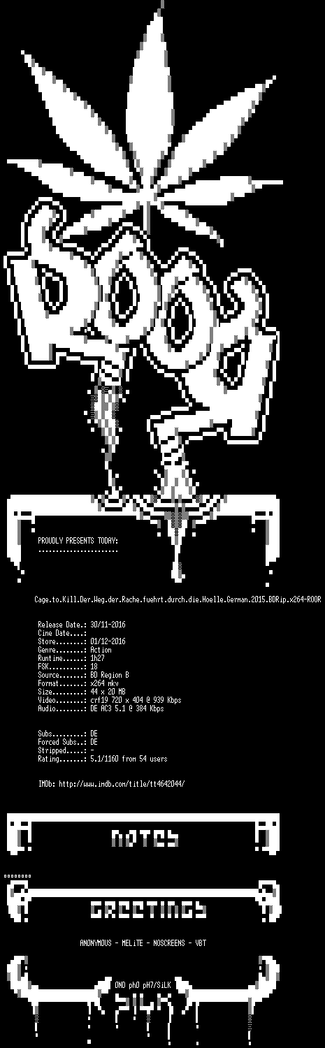 | FiLENAME: | Cage.to.Kill.Der.Weg.der.Rache.fuehrt.durch.die.Hoelle.German.2015.BDRip.x264-ROOR.mkv |