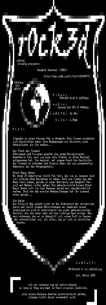 | FiLENAME: | Bangkok Haunted (2001) [GER-AC3 WS DVD] CD1.avi |