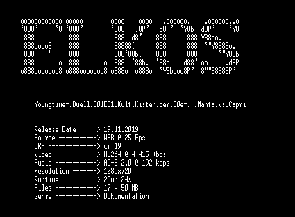 | FiLENAME: | Youngtimer.Duell.S01E01.Kult.Kisten.der.80er.-.Manta.vs.Capri.GERMAN.DOKU.720p.WebHD.x264-ELKOS.mkv |