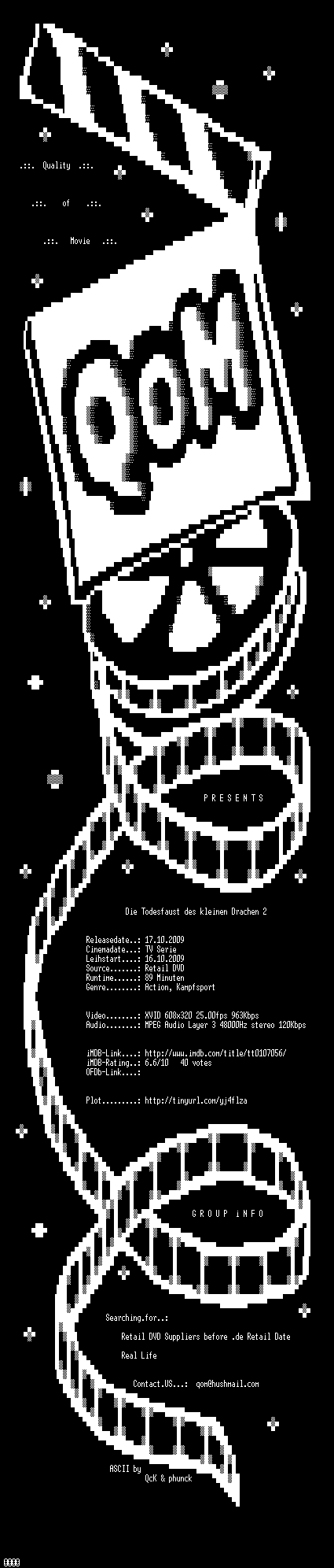 | FiLENAME: | Die.Todesfaust.des.kleinen.Drachen.2.German.1993.DVDRip.XviD-QoM.avi |