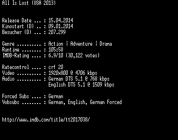 | FiLENAME: | All.Is.Lost.German.DL.1080p.BluRay.x264-EXQUiSiTE.mkv |