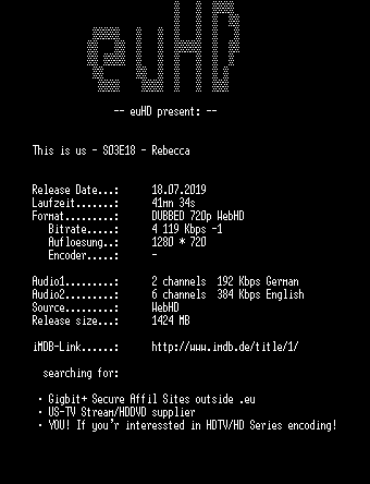 | FiLENAME: | This.is.us.S03E18.Rebecca.GERMAN.DUBBED.DL.720p.WebHD.h264-euHD.mkv |