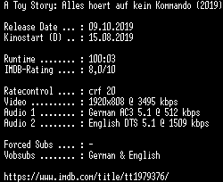 | FiLENAME: | A.Toy.Story.Alles.hoert.auf.kein.Kommando.2019.German.DL.1080p.BluRay.x264-COiNCiDENCE.mkv |