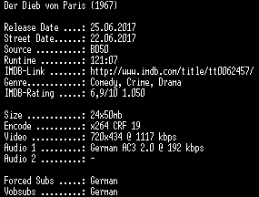 | FiLENAME: | Der.Dieb.von.Paris.German.REMASTERED.1967.AC3.BDRip.x264-SPiCY.mkv |