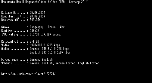 | FiLENAME: | Monuments.Men.Ungewoehnliche.Helden.German.DL.1080p.BluRay.x264-EXQUiSiTE.mkv |