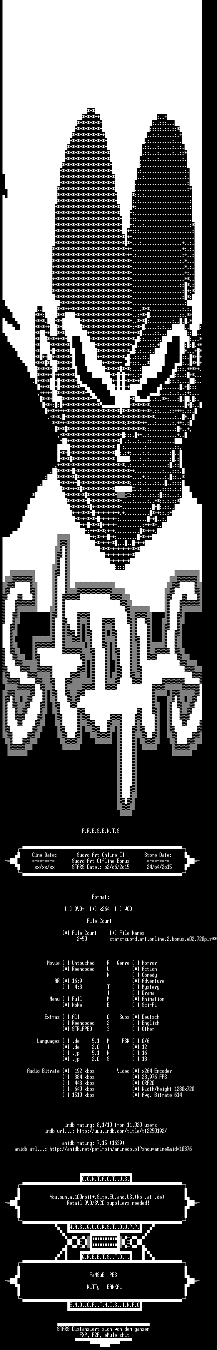 | FiLENAME: | Sword.Art.Online.II.Bonus.Sword.Art.Offline.E02.German.2014.ANiME.DL.720p.BluRay.x264-STARS.mkv |