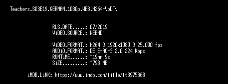 | FiLENAME: | Teachers.S03E19.GERMAN.1080p.WEB.H264-VoDTv.mkv |