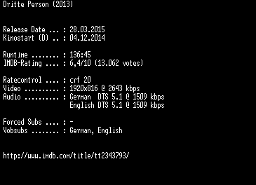 | FiLENAME: | Dritte.Person.German.DL.1080p.BluRay.x264-EXQUiSiTE.mkv |