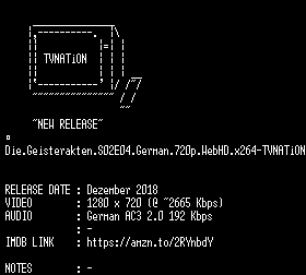 | FiLENAME: | Die.Geisterakten.S02E04.German.720p.WebHD.x264-TVNATiON.mkv |