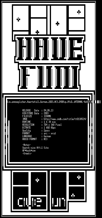 | FiLENAME: | Ein.unmoeglicher.Haertefall.German.2003.AC3.DVDRip.XViD.iNTERNAL-HaVeFuN.avi |