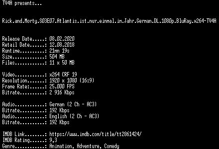 | FiLENAME: | Rick.and.Morty.S03E07.Atlantis.ist.nur.einmal.im.Jahr.German.DL.1080p.BluRay.x264-TV4A.mkv |
