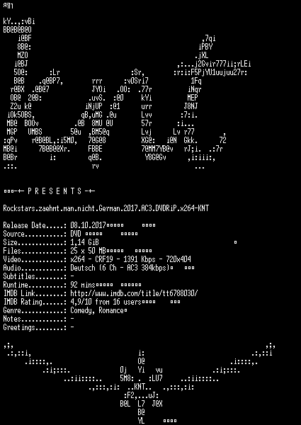 | FiLENAME: | Rockstars.zaehmt.man.nicht.German.2017.AC3.DVDRiP.x264-KNT.mkv |